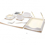 Sous-main, Corbeille à courrier, Cadre de photo, Pot à crayons, Trieur 2 compartiments, Porte stylos, Ouvre lettre, 3 Sous tasse, et Support bloc-notes.