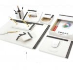 Sous-main, Corbeille à courrier, Cadre de photo, Pot à crayons, Porte stylos, Ouvre lettre, Support bloc-notes, Tapis de souris et 3 sous tasse.